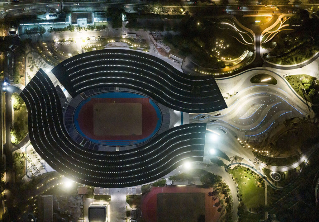 - Daily Elegance – “Internal Radiance”: Subtle internal translucent lighting bathes the arenas in soft, energy-efficient 3000K–4000K whites, highlighting the sleek contours of modern architecture. This creates safe, inviting spaces for community jogs and evening training, evoking a sense of calm vitality without overwhelming the surroundings.