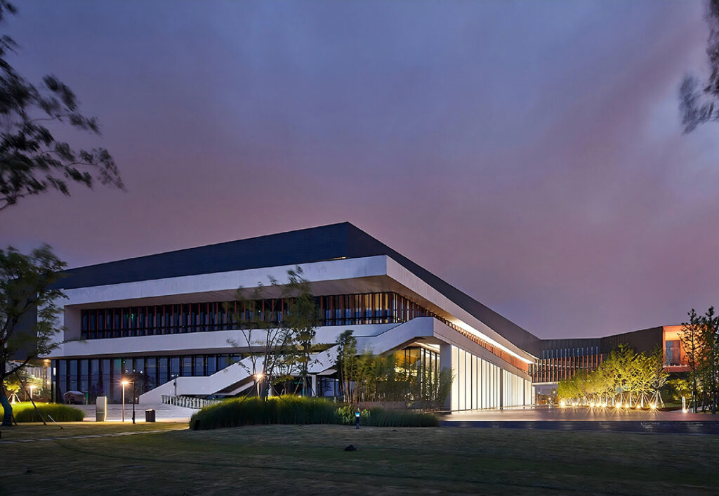 The design project covers 75,000 square meters and consists of five floors. The floor plan was shaped through three turns. The building linearly extends along the lake, providing more visual angles of the lake view. We have maximized each floor-level office area and supported it with multiple vertical transportation cores. This maximizes communication and collaboration efficiency, and the space utilization is highly intensive and flexible.