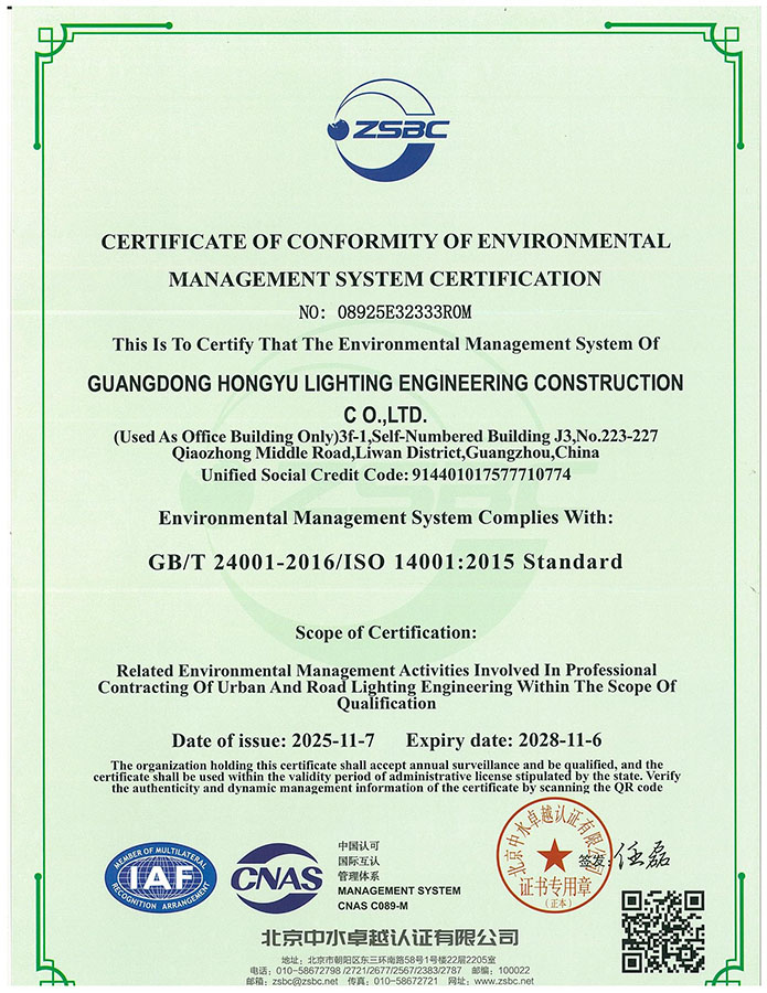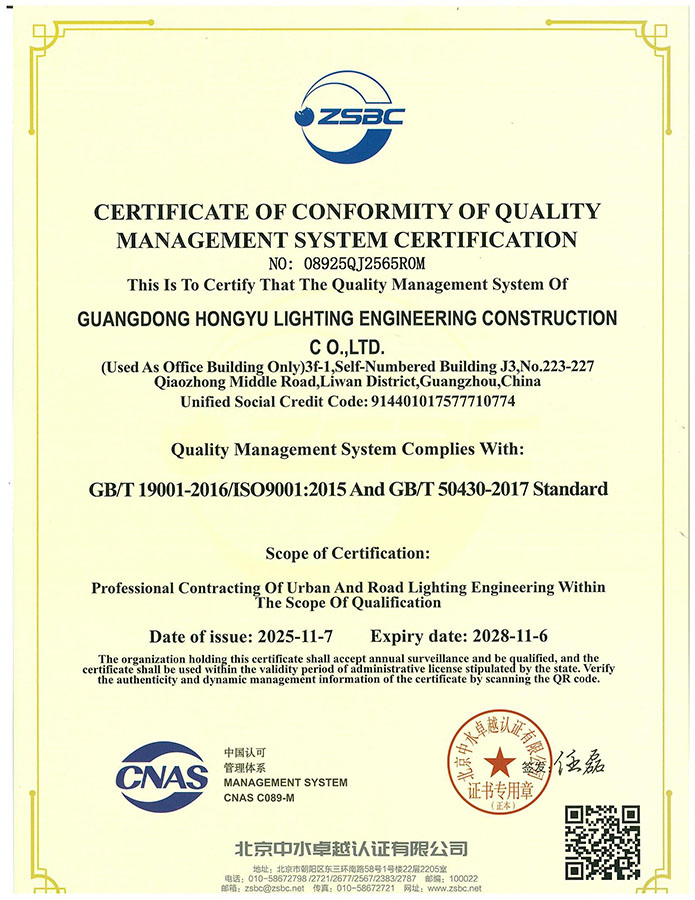Hongyu Lighting is a comprehensive light environment service provider integrating research, planning, design, and engineering. With top-tier national qualifications in lighting construction, design, electronics, and power installation, the company delivers end-to-end illumination solutions across commercial, municipal, and smart lighting projects. Recognized as a state-certified high-tech enterprise, Hongyu continues to lead innovation in the lighting industry.